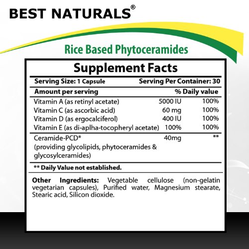 -. Title : Phytoceramides Plant Derived Rice Based 100% Gluten Free & Wheat Free By ★ Best Naturals | Anti-Aging Supplement Made from Clinically Proven Ceramide-PCD with Best Vitamins A, C, D & E for Beautiful Skin - More Advanced Than 350 Mg Phytoceramides | Healthy Skin Hydration 100% Guarantee