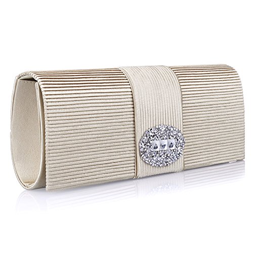 Ladies' Designer Pleated Satin Evening Bags for Women Formal Clutch Purse Stone Evening Handbag (black)