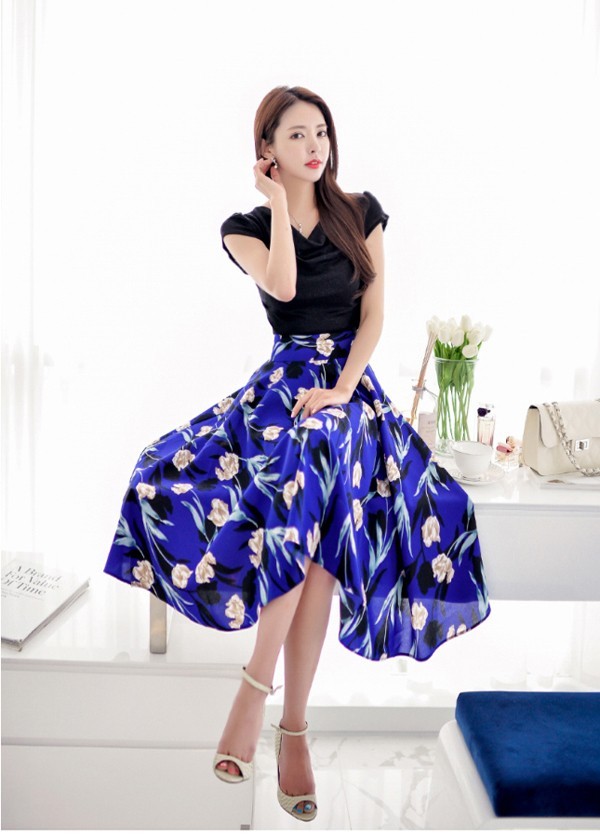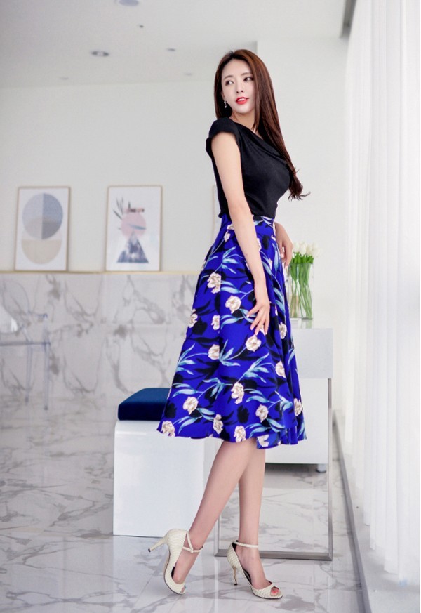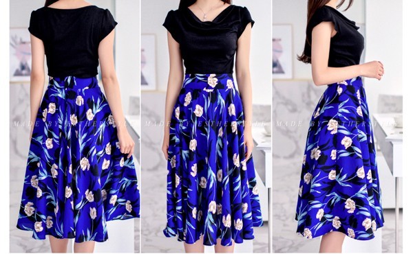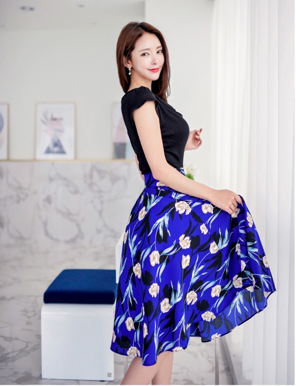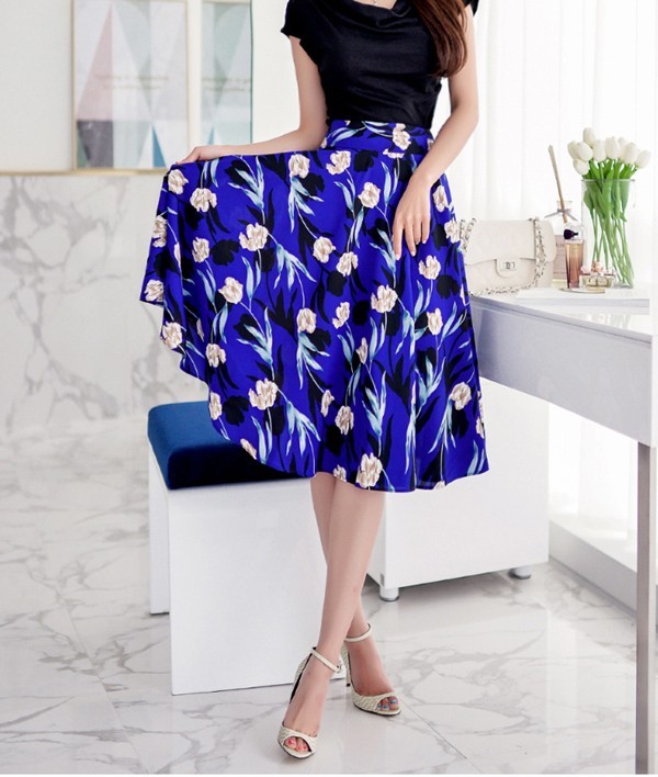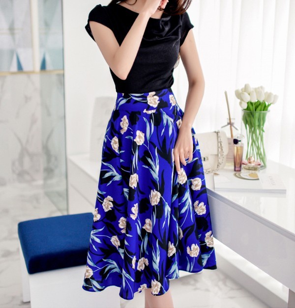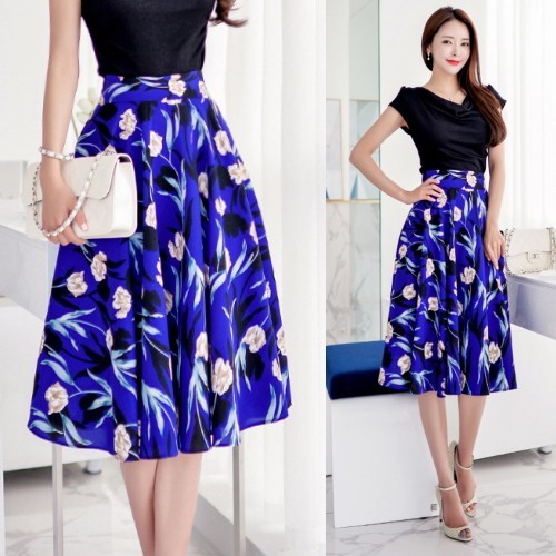 商品名:フレアスカート 膝丈 花柄 きれいめ 30代 40代 レディース ファッション