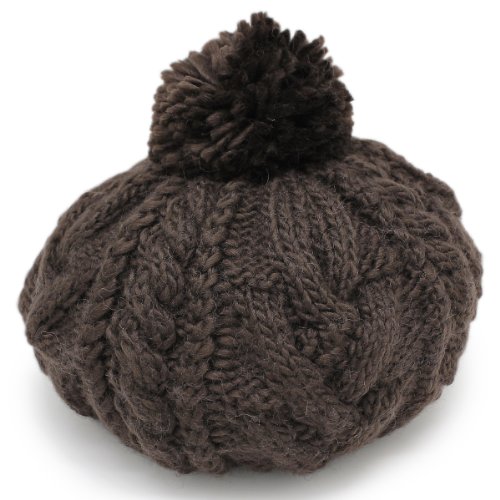 -. Title : ベレー帽 レディース 帽子 秋冬 ニット ガーリー シンプル カラフル milsa ふんわりケーブルボンボン付きベレー帽