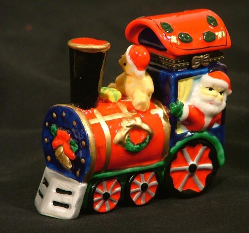 Santa Claus Teddy Bear Toy Train Trinket Box