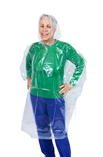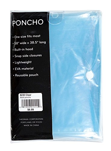 Product Description You visit an amusement park and you notice the sky is dark. Then the downpour hits, and you are soaked. This adult-size poncho fits in most purses and backpacks. It is easy to grab and unfold to pull over you. The built-in hood keeps your hair dry. Comes in a compact plastic pouch with snap closure. Buy extras to keep in your car and ?backpack. Great to pack for ball games and other activities. 0