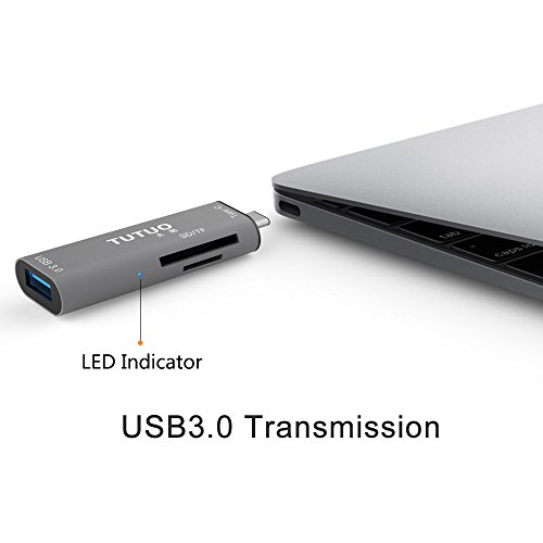 TUTUO V15 Type-c Card Reader USB-C to USB-A 3.0 Female OTG Adapter USB C SD/TF Mircosd Card Reader USB 3.0 Hub Converter for New MacBook, Tablets, Samsung S7, Android Nintendo Switch (Grey)