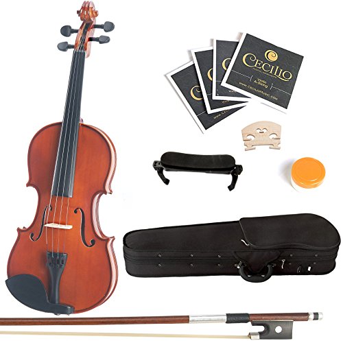 Studio : Cecilio Musical Instruments Publisher : Cecilio Musical Instruments Binding : Electronics Product Description Mendini violin is perfect for the beginner or student violinist. It features hand-carved solid spruce top, hand-carved maple back and sides. This violin is fitted with rosewood (painted black) fingerboard, pegs, chin rest, and alloy tailpiece with 4 built-in fine tuners. Violin accessories include Brazil wood bow with unbleached genuine Mongolian horsehair, a lightweight form fitting hard shell case with pockets and backpack strap (making it convenient to carry to school or orchestra), adjustable shoulder rest with soft foam padding soft rubber feet, quality rosin cake, 2 violin bridges and an extra set of violin strings. Buy with confidence as it comes with a 1- year warranty against any manufacturer's defects. 0