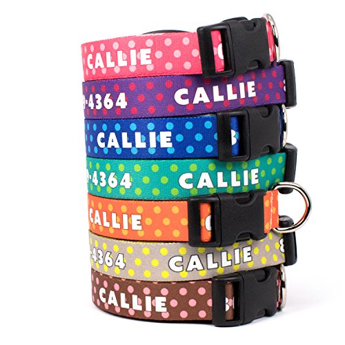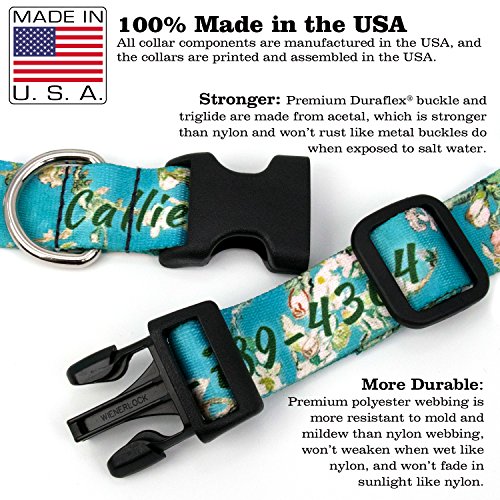 Studio : Buttonsmith Publisher : Buttonsmith Binding : Misc. Product Description Our US-made personalized dog collars are built to ensure your dog's critical information remains with them in the unlikely event they are lost. PERSONALIZED WITH YOUR DOG'S INFORMATION: Add any text you want, including your dog's name, your phone number, an address, or be creative. Our premium personalization permanently bonds the color and information onto the collar, so it won't wear off, become ragged like embroidery, or get lost as tags sometimes do. Personalization information will be repeated along the length of the collar. STRONGER DURABLE WEBBING: We use a top quality polyester webbing made in the USA just for us rather than the nylon used by most of our competitors because polyester repels water, is rot and mildew resistant, doesn't stretch like nylon when wet, and is 5x more abrasion-resistant than nylon. HIGHEST QUALITY BUCKLE: We use Duraflex acetal buckles rather than more common nylon or metal buckles. Acetal buckles have higherr tensile strength than nylon, resist moisture better, and perform better under freezing or arid conditions. We chose acetal over metal because metal corrodes in salt water, creating problems when dogs go swimming (as they often do in our part of the world!). MADE IN THE USA: We design produce the collars in our shop in downtown Carnation, Washington, using 100% US-made materials. Every piece of our collars from the webbing and thread to the buckles and D-rings are made by American workers. DO NOT USE FOR TIE OUT: No collar configured like this should be used to tie a pet out to a fixed object. Buttonsmith's American-made products are created with care in the small town of Carnation, Washington. We use the highest quality materials available so that you can rely on our products for years to come. 0