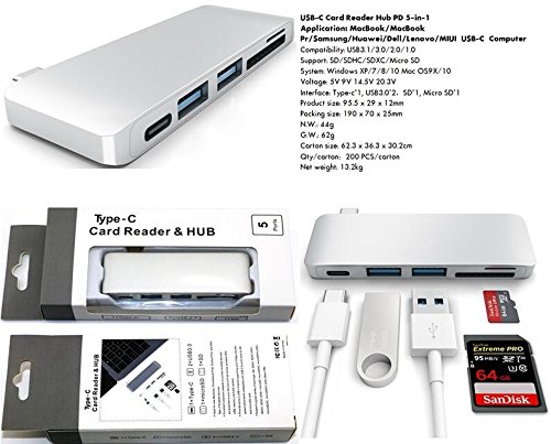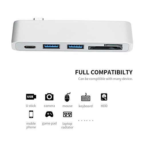 Expand your Type-C port - The Type-c Hub with 2 USB 3.0 ports, a SD and Micro SD card slot, and a USB-C charging port. Designed for new Type-C products, including new 12" MacBook, MacBook Pro 13" and MacBook Pro 15" as well as other USB Type-C devices like Chromebook Pixel.