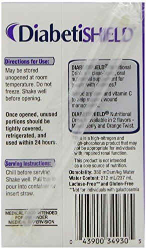 ReleaseDate : 2009-03-17 Studio : Resource Publisher : Resource Binding : Grocery Product Description Diabetishield Nutritional Drink is a clear liquid supplement for people with diabetes on a clear liquid diet. Suitable for fat-free, low-residue, gluten-free, kosher and lactose-free diets* (*Not for individuals with galactosemia) Not for IV use. Diabetishield is not a total feeding. USE UNDER MEDICAL SUPERVISION AS PART OF A DIABETES MANAGEMENT PLAN 0