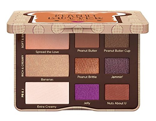 Studio : Too Faced Publisher : Too Faced Binding : Misc. Product Description Inspired by the social media sensation that is Peanut Butter from our bestselling Semi-Sweet Chocolate Bar Collection, we created this peanut butter palette of nine gorgeous matte and shimmer shades featuring antioxidant-rich cocoa powder with a creamy peanut butter twist! Includes our signature Glamour Guide with three looks to get you started. 9 shades infused with antioxidant-rich cocoa powder. Color Descriptions: Spread the Love: Medium Peach with Gold Sparkle, Peanut Butter: Matte Medium Orange Brown, Peanut Butter Cup: Metallic Golden Bronze with Gold Sparkle, Bananas: Soft Peachy Gold with Fine Gold Shimmer, Peanut Brittle: Metallic Burnt Orange, Jammin': Dark Chocolate with Golden Sparkle, Extra Creamy: Matte Creamy Beige, Jelly: Vibrant Orchid, Nuts About U: Matte Brown with Red 0