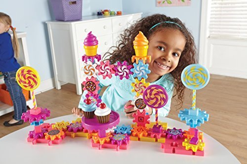 Studio : Learning Resources Publisher : Learning Resources Binding : Toy Product Description Gears! Gears! Gears! Sweet Shop Building Set Kids build early STEM skills such as problem solving, critical thinking, and perseverance when they construct their own creation of swirling treats. This 82-piece set includes colored lollipops, cupcakes, ice cream cones, stickers, and more. Compatible with all Gears! Gears! Gears! sets.