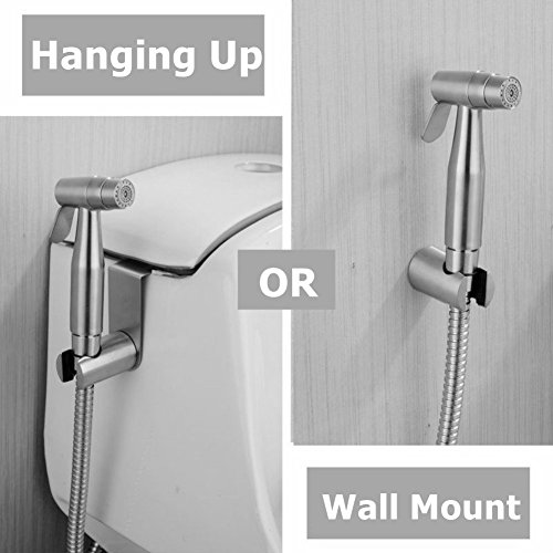 - EASY INSTALLATION - Convenient for any bathroom. No difficult tools needed ,comes with DIY accessories. Complete set for 10 Min Installation easily and quickly ,two handheld bidet sprayer hanging options: to the toilet tank or to the wall.