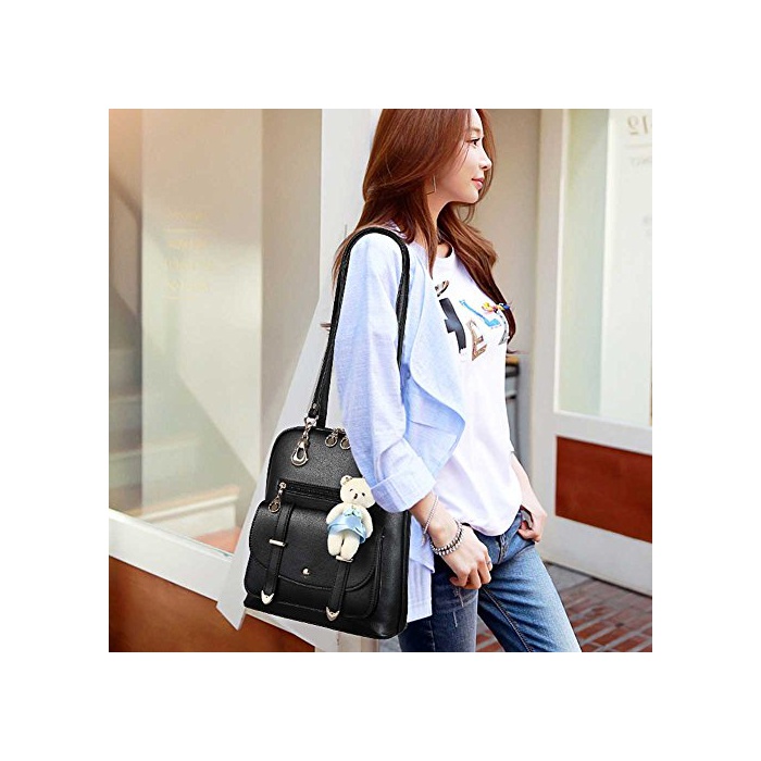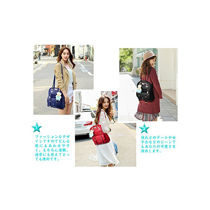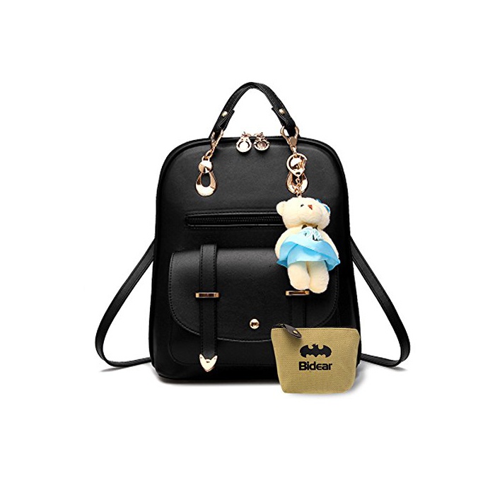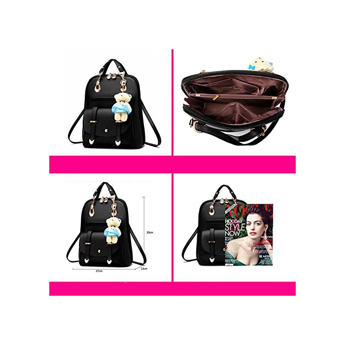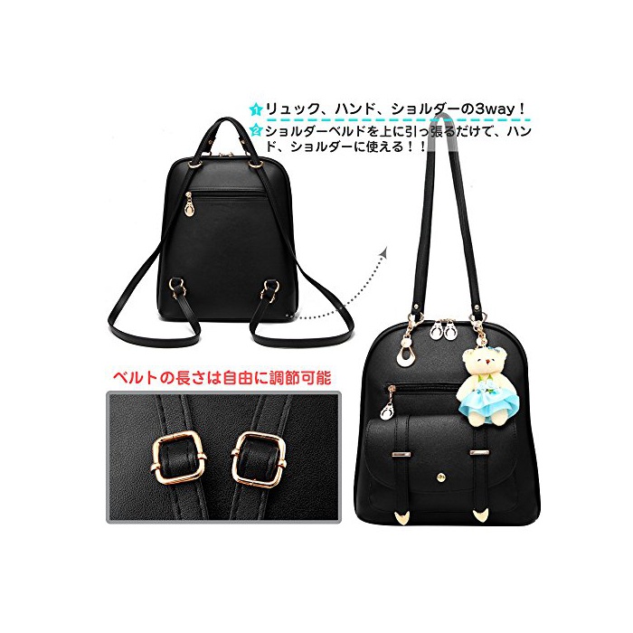 Bidear 【Misakira】배낭 PU레더백 레이디스 숄더 핸드백 3way 대 용량 캐주얼 멋장이 금구 장난감 장식 귀여운 백 엘레강트중학생 고교생 겸용