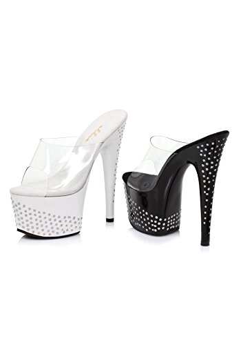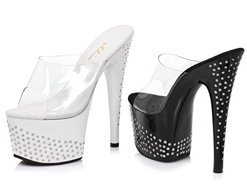 Product DescriptionEllie Shoes E-709-Sandy 7" Pointed Stiletto Mule With Rhinestone Platform. Color: Black White. Sizes: 5-12.0