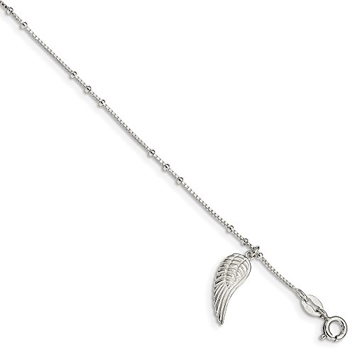 Solid 925 Sterling Silver Polished Wing Dangle 9in with 1Ext Anklet 9" (1mm)
