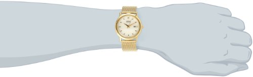 - Feature : Gold-tone watch in stainless steel with round white dial and mesh bracelet / Japanese quartz movement with analog display / Eco-drive is fueled by light so it never needs a battery / Features protective mineral crystal dial window, push-and-slide clasp closure, and date window / Water resistant to 99 feet (30 M): withstands rain and splashes of water, but not showering or submersion / Gold-tone watch in stainless steel with round white dial and mesh bracelet / Japanese quartz movement with analog display / Eco-drive is fueled by light so it never needs a battery / Features protective mineral crystal dial window, push-and-slide clasp closure, and date window / Water resistant to 99 feet (30 M): withstands rain and splashes of water, but not showering or submersion