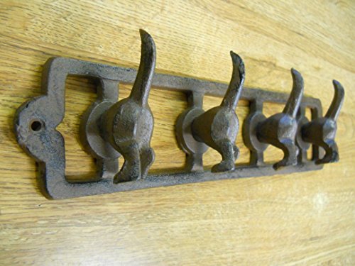 - 4 Hook Cast Iron Dog "Rear" with happy tails with hardware