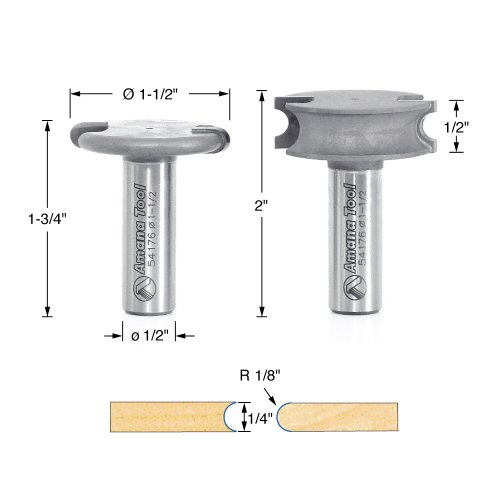 Amana Tool 54176 Flute and Bead 1-1/2-Inch Diameter by 1/2-Inch Cutting Height by 1/2-Inch 2-Flute Shank Router Bit Set