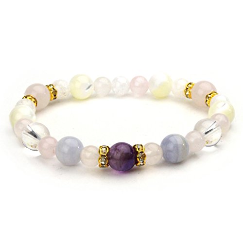 ◆2월 탄생석의 아메지스트를 주요하석에 색취 훌륭한 천연석 파워 스톤에디자인된 콤비네이션 팔찌입니다. 블루나 핑크의 컬러풀한 색조와 크랙 쿼츠의 키라《메키》가 멋지게 융합한 패셔너블 파워 스톤 팔찌입니다.