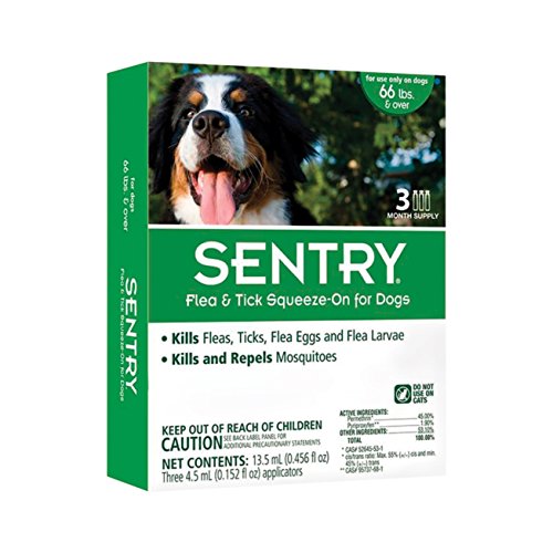Studio : Sergeants Publisher : Sergeants Binding : Misc. Product Description Sentry Pro Squeeze-On Flea Tick for Dogs kills and repels fleas and ticks for up to a month. Kills flea eggs and larvae. Kills and repels mosquitoes. Kills flea eggs and larvae up to 4 months. Kills and repels fleas, ticks and mosquitoes for up to one month. Use only on dogs 3 months and older. Do not use on cats. Wash your hands after handling pet food or pet treats or touching an animal, animal feed, or animal waste. 0