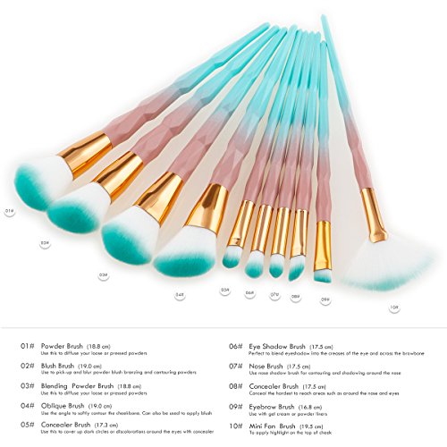10pcs Professional Makeup Brush Set Unicorn,Scofieldly Foundation Brush Set Including Eyebrow Eyeliner Face Powder Foundation Brush