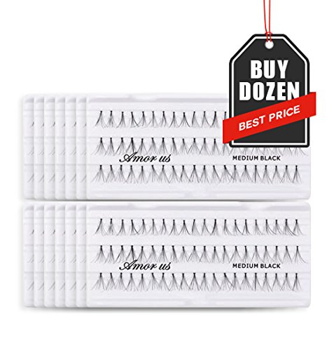 Amorus 12 Pairs Multipack Flare Medium False Eyelashes Dozen Set 100% Natural Hair Black Handmade Comfortable Reusable Individuals Fake Lashes Pack