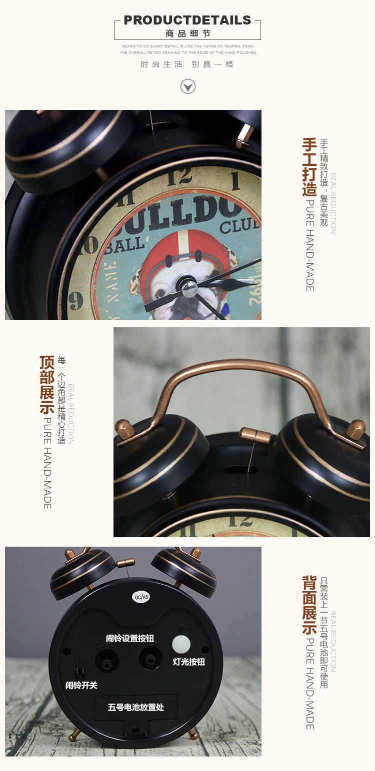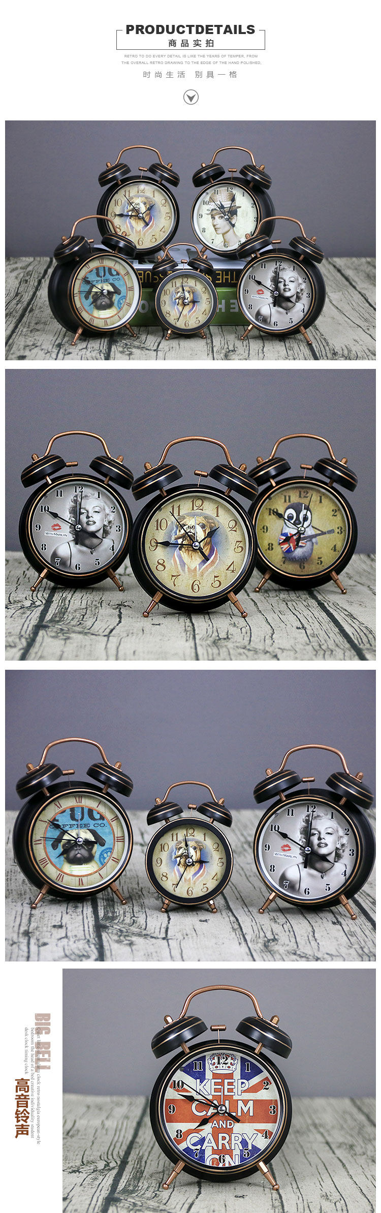 闹钟创意复古怀旧学生静音钟表座钟客厅个性礼物欧式床头时钟摆件