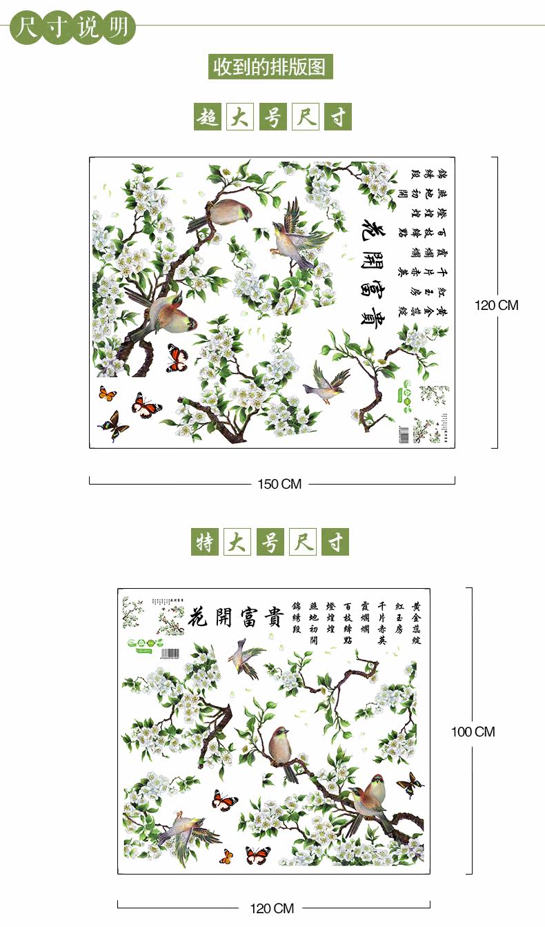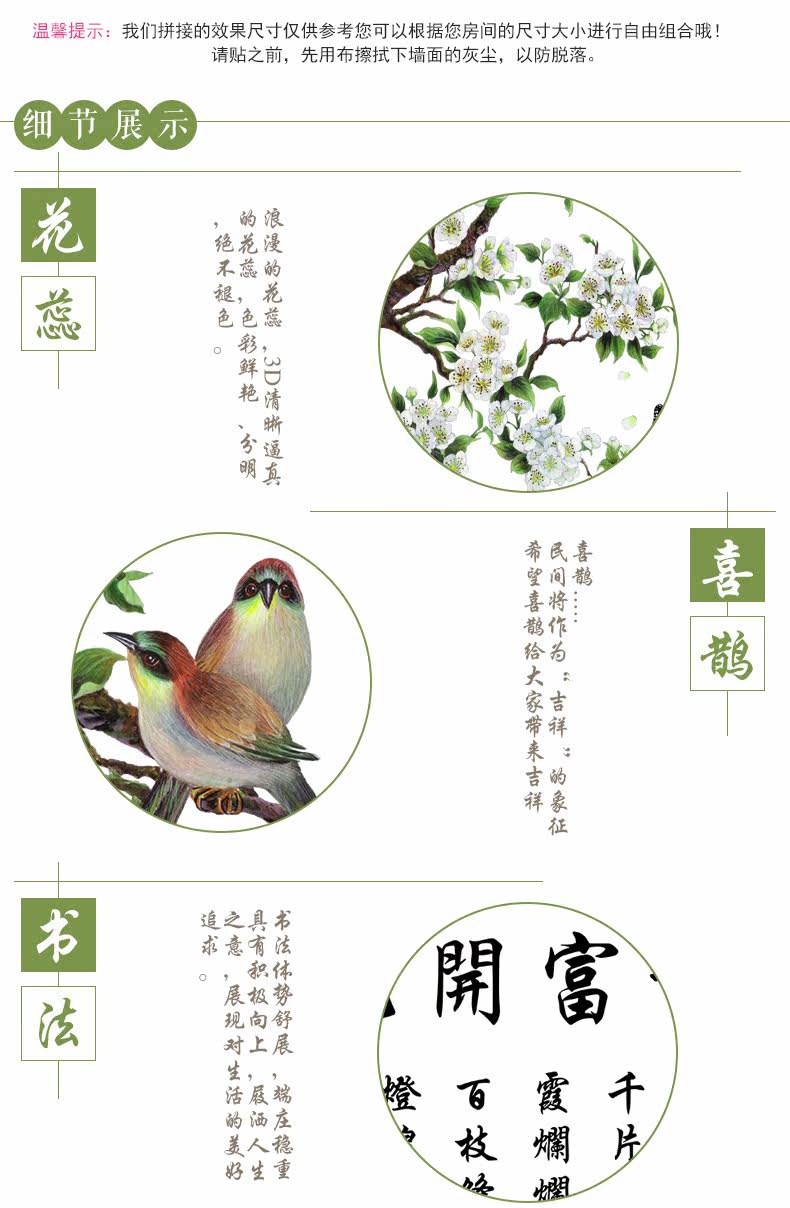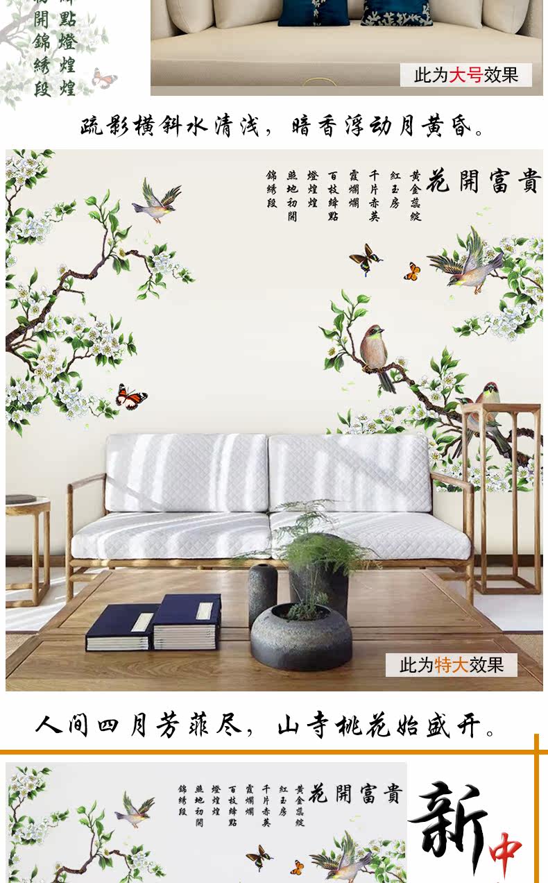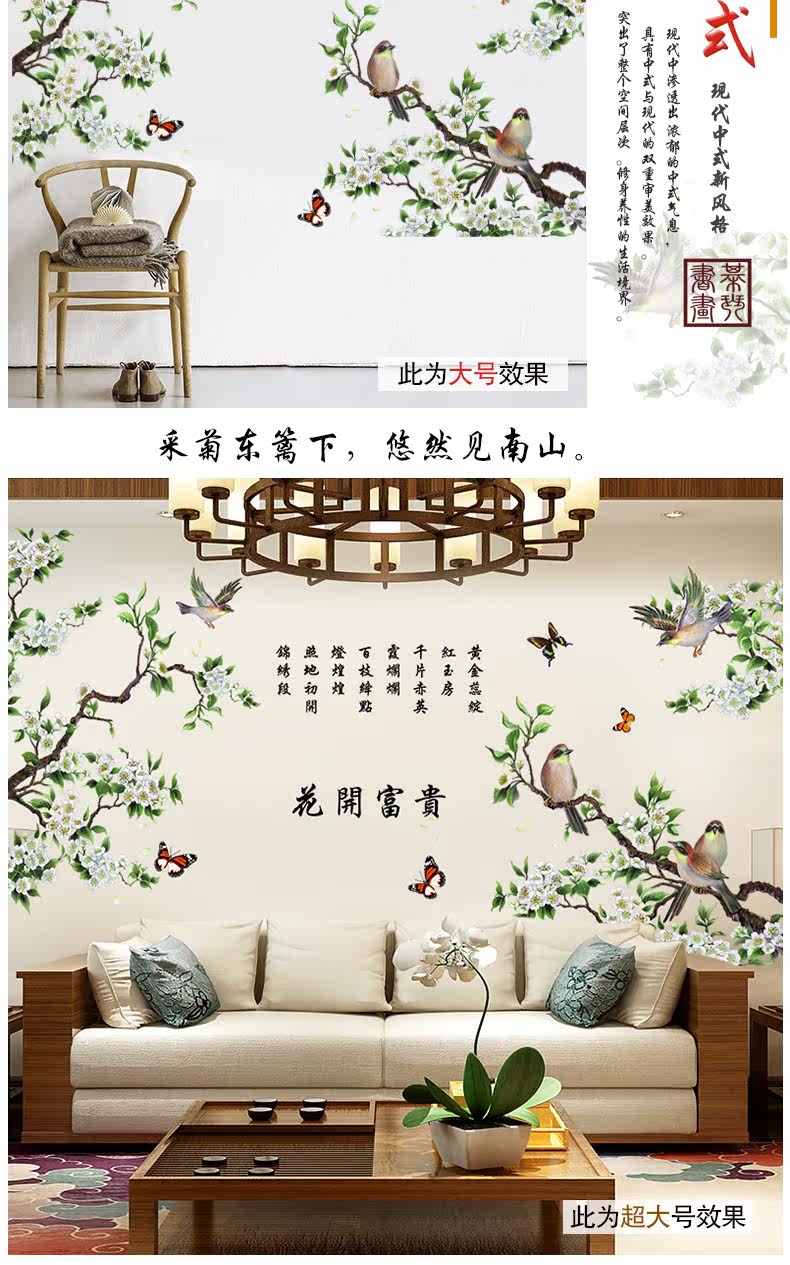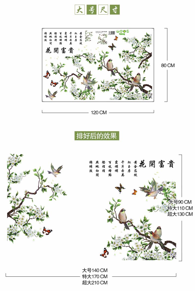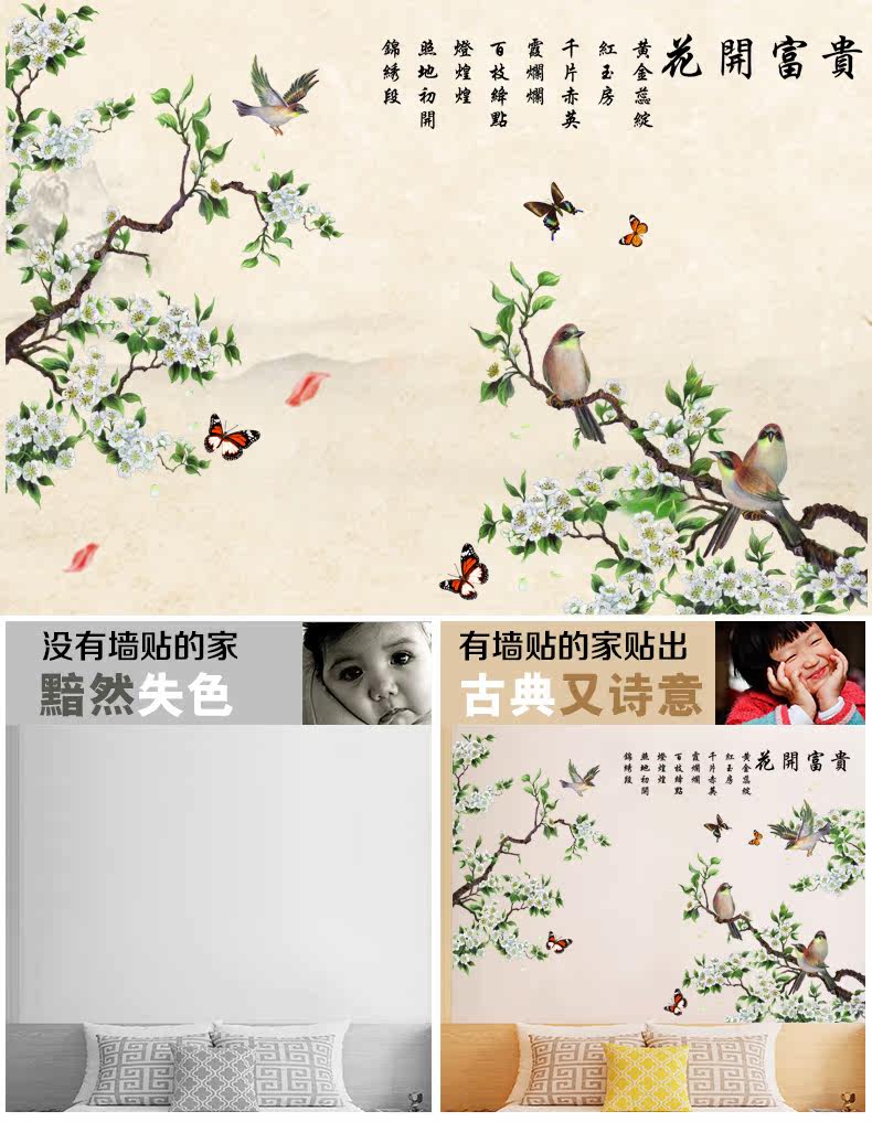 花开富贵墙贴纸 卧室书房客厅装饰背景墙贴画 可移除自粘贴纸墙纸