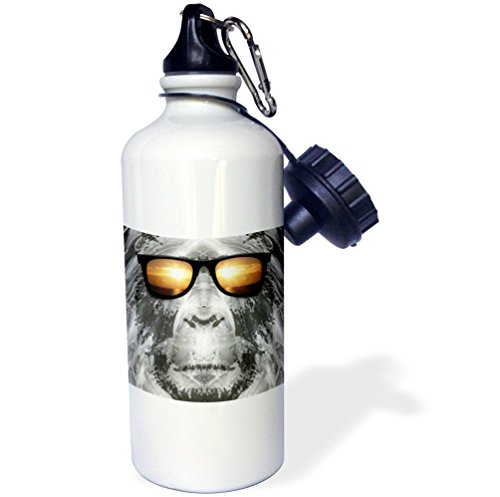 3dRose wb_19405_1 Bigfoot in Shades Bigfoot Or Sasquatch Is Pictured in Style Wearing Sunglasses Sports Water Bottle, 21 oz, White