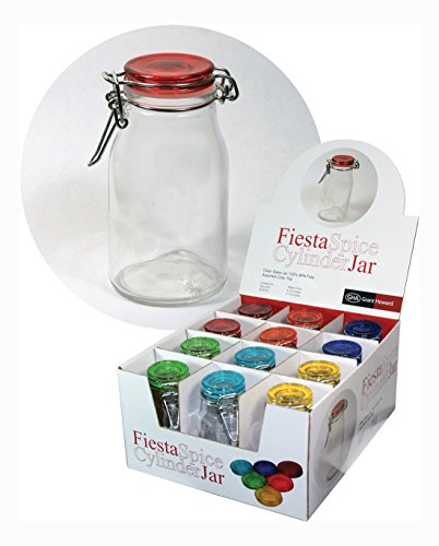 Grant Howard 6 oz Fiesta Cylinder Spice Jars, Assorted Colored Lids, 12per Carton, , Clear