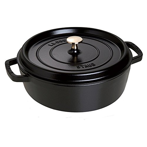 -. Title : Staub Wide Round Oven Shallow Cocotte, Black Matte, 6 qt. - Black Matte