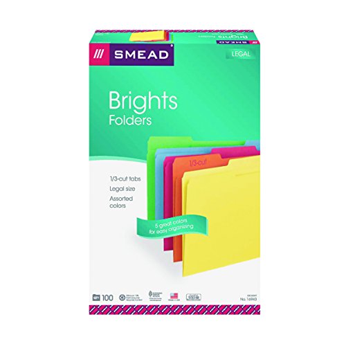 -. Title : Smead File Folder, 1/3-Cut Tab, Legal Size, Assorted Colors, 100 per Box (16943)