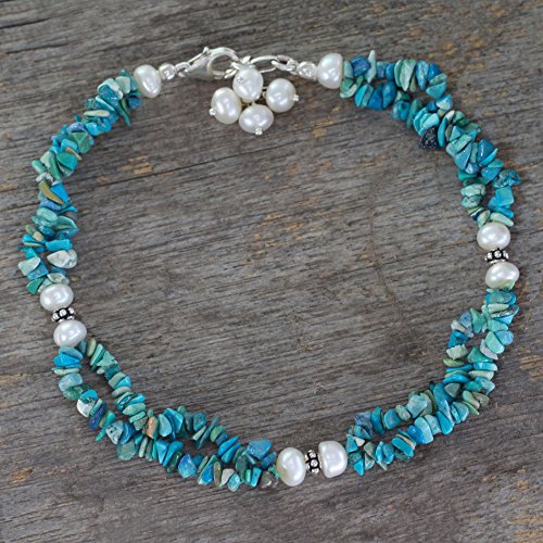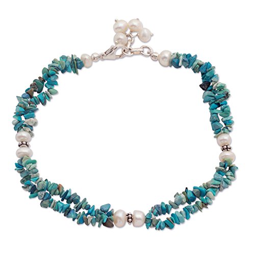 -. Binding : Jewelry -. Brand : NOVICA -. Department : womens -. EAN : 0808773403512 -. Feature : An original NOVICA fair trade product in association with National Geographic. / Includes an official NOVICA Story Card certifying quality & authenticity. / NOVICA works with Narayani to craft this item. / Includes an original NOVICA jewelry pouch to keep for yourself or give as a gift. / 9.25 in. min L - x 9.75 in. max L x 0.4 in. W -. Label : NOVICA -. Manufacturer : NOVICA -. MPN : 206462 -. PackageQuantity : 1 -. PartNumber : 206462 -. ProductGroup : Jewelry -. ProductTypeName : FINENECKLACEBRACELETANKLET -. Publisher : NOVICA -. Studio : NOVICA -. Title : NOVICA Turquoise Cream Cultured Freshwater Pearl .925 Sterling Silver Anklet, 9.25" 'Song of Summer' -. UPC : 808773403512