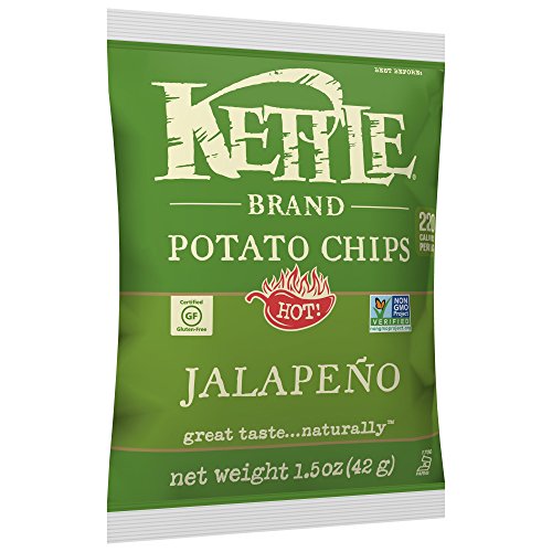 Jalapeno Kettle Brand Potato Chips have a zesty, south of the border flavor. Striking a perfect balance between fresh, well-rounded flavor and the clean, spicy bite of Jalapeno peppers, these all natural chips are easy to eat with a satisfying burn that sneaks up on you. Pair them with an ice cold cerveza and kick back with this festive, fiery flavor.