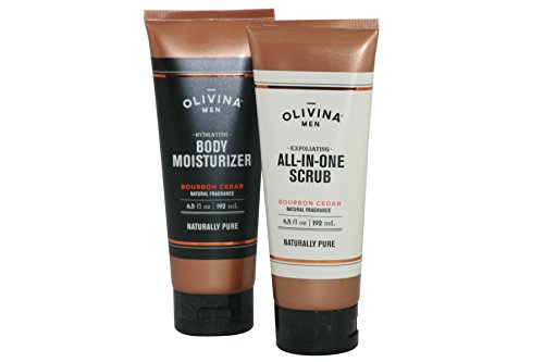 Olivina Mens Bourbon Cedar All-in-One Scrub and Body Moisturizer Bundle