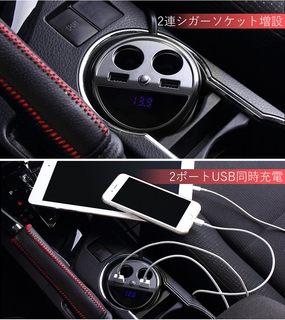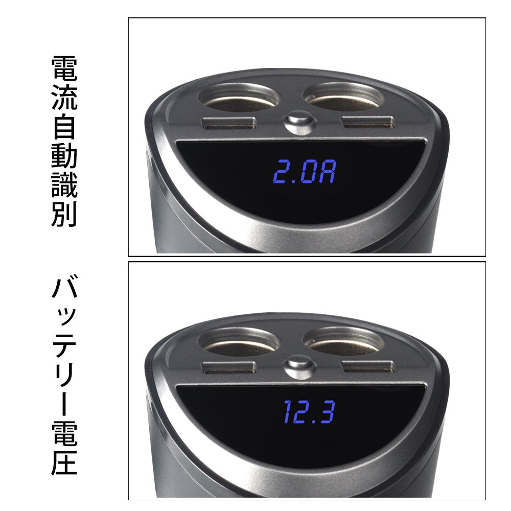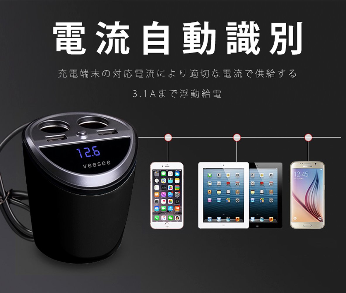 [veesee] cigar socket charger expansion 2 series in-car USB charger 2 port current automatic detection voltage meter attaching 12V 24V car correspondence (cup type)