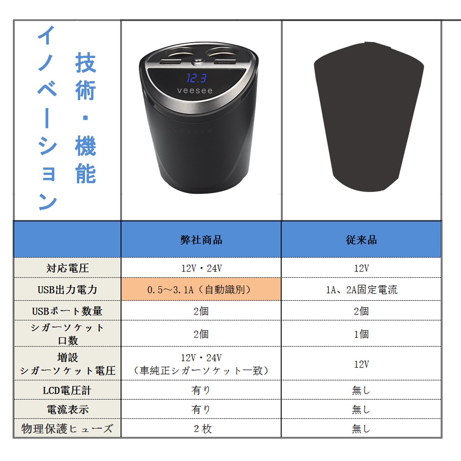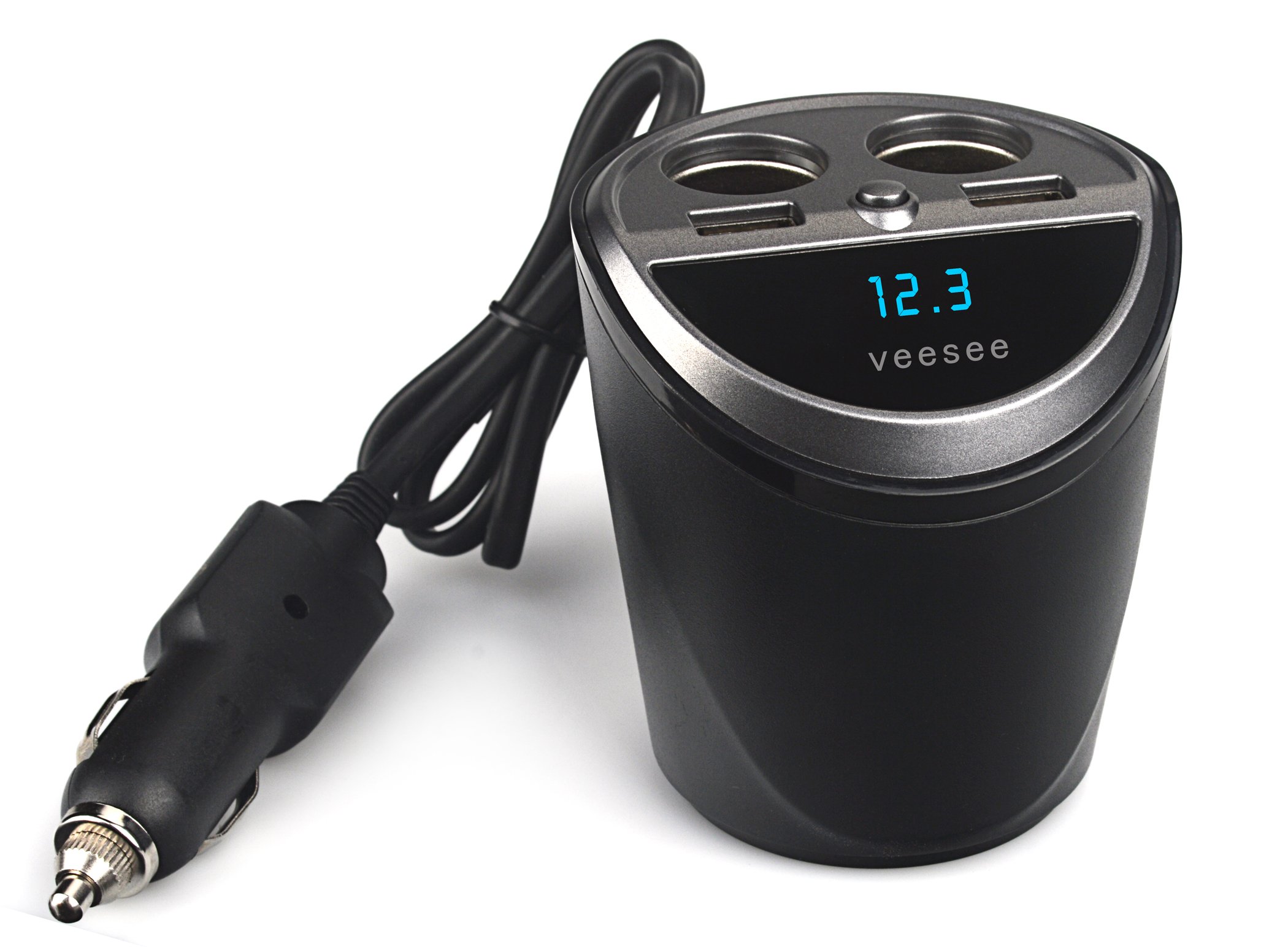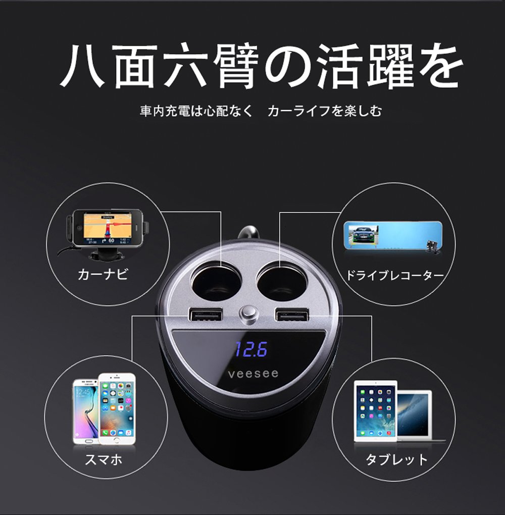[veesee] cigar socket charger expansion 2 series in-car USB charger 2 port current automatic detection voltage meter attaching 12V 24V car correspondence (cup type)