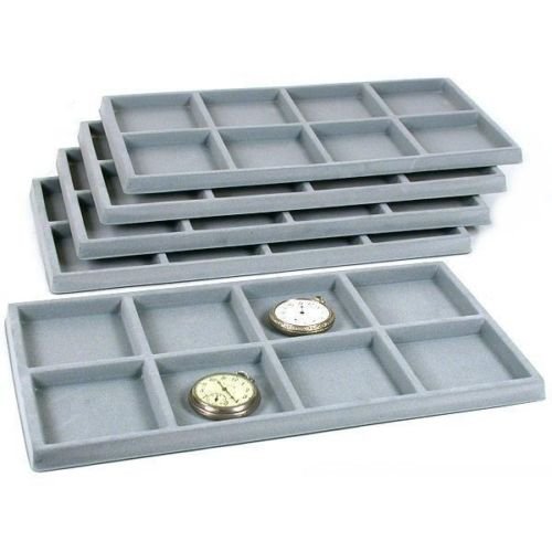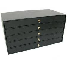Drawer Jewelry Organizer Storage Display Case Box 5 Drawer Jewelry Organizer This is a new black 5 drawer jewelry storage organizer case Protect samples in storage and transport with this durable case Has 5 full size drawers that fit any full size insert or pad It measures approximately 15 1/8" x 8 3/8" x 7 5/8" (38.4 x 21.3 x 19.2 cm) 5 Tray Inserts This is a new set of 5 gray flocked insert trays. With these inserts you are able to keep components, findings or bracelets organized and visible. Each measures approximately 14 1/8" x 7 5/8" x 1/2" (35.8 cm x 19.2 cm x 12 mm). You receive: One 8 compartment insert tray with compartments that measure approximately 3 1/8" x 3 3/8" (79 x 86 mm) One 10 compartment insert tray with compartments that measure approximately 1 1/8" x 6 7/8" (28 x 174 mm) One 18 compartment insert tray with compartments that measure approximately 2" x 2 1/4" (50 x 56 mm) One 24 compartment insert tray with compartments that measure approximately 2 1/8" x 1 5/8" (53 x 40 mm) One 32 compartment insert tray with compartments that measure approximately 1 1/2" x 1 5/8" (38 x 40 mm)Feature