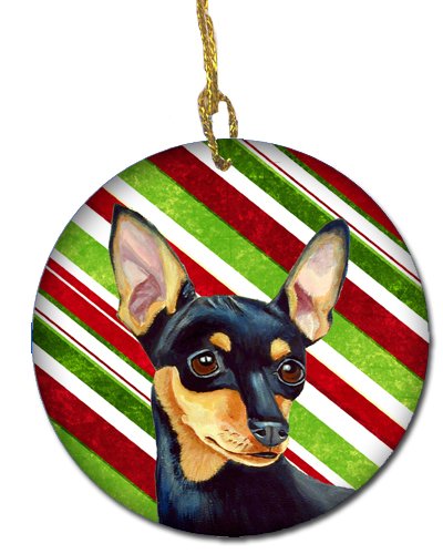 Caroline's Treasures LH9245-CO1 Min Pin Candy Cane Holiday Christmas Ceramic Ornament, Multicolor