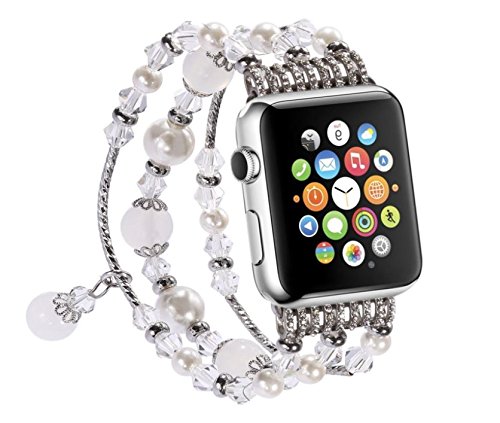 -. Title : Apple Watch Band, FloriBiz Handmade Elegant Elastic Faux Fine Pearl and Agate Natural Stone Replacement Bracelet, iWatch Strap for Women, for Apple Watch Series 3/2/1, Various Sizes and Colors