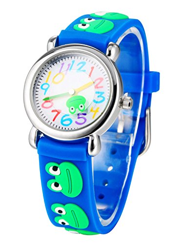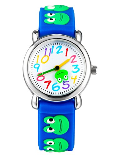 FEOYA 손목시계 (어린)아이용 사내 아이 키즈 입원식 유아 (어린)아이 워치 입학 축하 초등학생 아날로그 개구리무늬 입학 졸업 축하 운동회 생일의 기프트 선물 블루