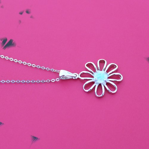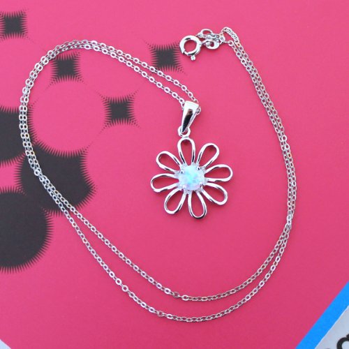 - Title : Sterling Silver & Opal Daisy Flower Pendant Necklace 18"