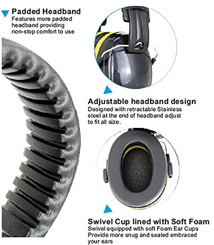 -. Feature : QULITY-The Noise Reduction Rating(NRR) of ear muffs is up to 34dB (26db average), very effective in ear protection when using a lawn mower or other loud environments,like shooting, hunting mowing and drilling etc. / ADJUSTABLE - Designed with an over-the-head, one size fits all model that is suitable for adults and children. Our swivel design will easily fall into place for a snug, comfortable fit. Within seconds you are protected from any noises that come your way. / COMPACT- Compact size and light weight design perfect for carry the ear muffs headphone in the bag without adding too much weight or bulk. / SOLID - Industrial grade premium quality Guaranteed not to Break give to best hearing protection. / STANDARD-CE, ANSI, AS/NZS, EN352.1.