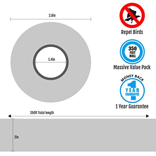 - 2 Pack*350Ft VALUE ROLL - Birds cause millions of dollars of damage to homes, roofs, cars, AC systems and more every year. This inexpensive fix will reduce the amount of corrosive bird droppings on your property and eliminate fire hazards as a result of bird nest prevention. Save money on repair costs and expensive bird control companies