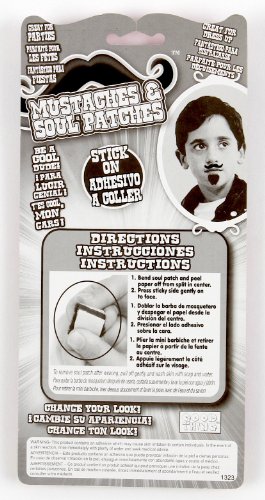 Sport a handlebar, a Frank Zappa-style mustache/soul patch combo, or a tiny chin patch with these hilarious stick-ons from Good Things! To use, just peel the paper off of the backside of one or more pieces to expose the adhesive underneath, then attach to your face. After use, just pull it off gently and wash your face with soap and water. Even if you can't actually grow a mustache of your own, you'll have tons of fun and lots of laughs with this set.Feature