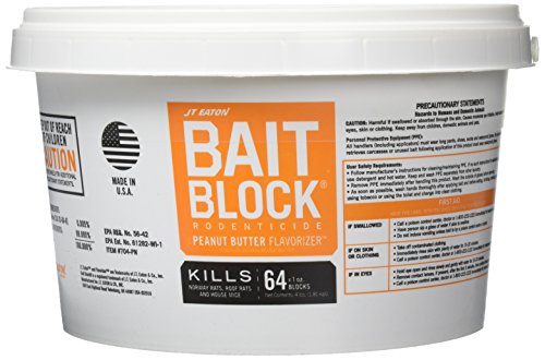 JT Eaton 704-PN Bait Block Rodenticide Anticoagulant Bait, Peanut Butter Flavor, For Mice and Rats (Pail of 64)