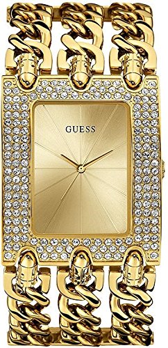 Define Your Time with this GUESS Rocker Metal Gold-Tone Chain-Link Crystal Watch with Self-Adjustable G-Links & that's Unisex, a Perfect Hybrid for Him or HerFeature