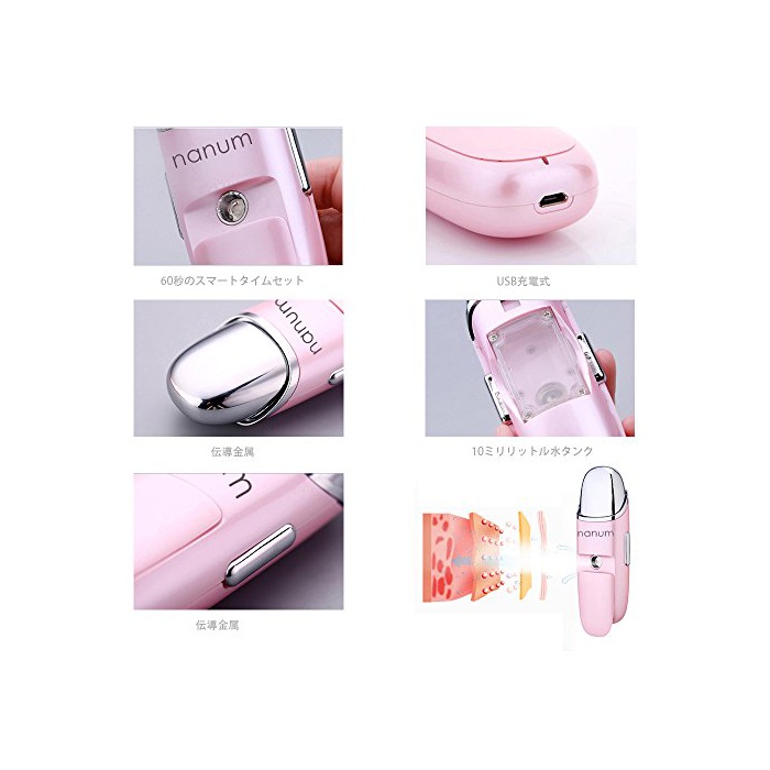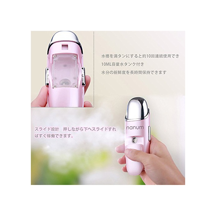 「피부에 수분 보급」하이 텍 기능 첨부 와:나노 스프레이 보습 60초의 초길이 스프레이 기능으로 안개보다(부터)도 미세화 한 미스트가 모공을 빠져나가 피부 자체로 윤택을 보낼 수 있고, 메이크를 한 것에서도 쓸만합니다.또한욕실 오르게 화장수를 붙여 있는 분은 살짝 했 초미세 미스트가 기분 좋게 모공에 도착합니다.