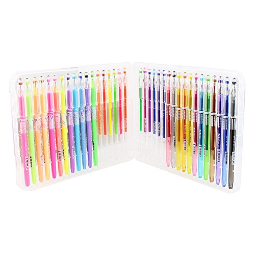 - Feature : 36pcs/box. ONE BOX vibrant colors including: 12 neon, 12 Glitter, 12 Pastel / Writing Point: Neon 0.8mm, Pastel 0.8mm, Glitter 1.0mm / Free-flowing ink provides smooth, crisp application / Great pens to sketch, draw, color, write greeting cards, party invites,letters to friends and family, arts and crafts, decoration / Package Includes: 72pcs pens + 1pcs green or ocean blue silicone bracelet (Note: The bracelet's colors of gifts will be random shipments)