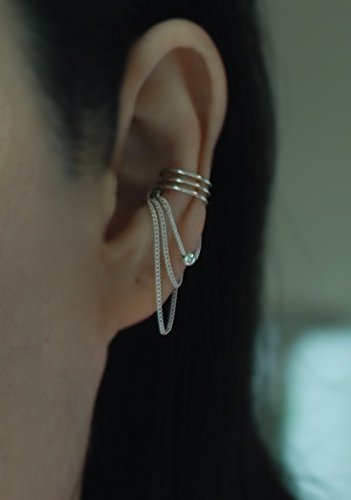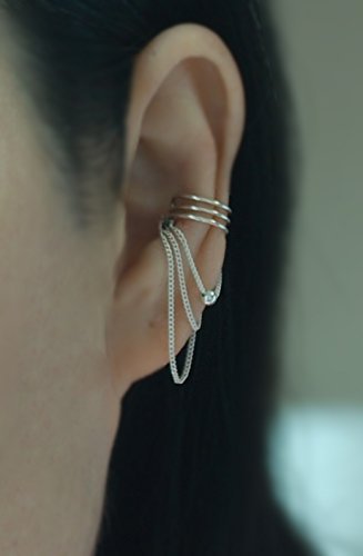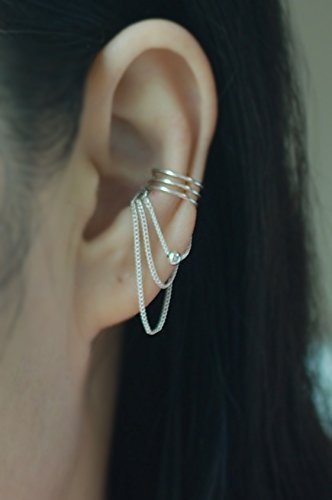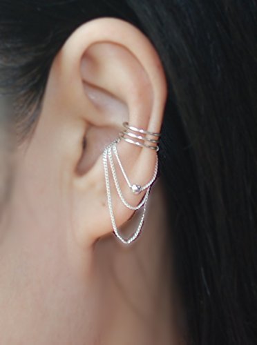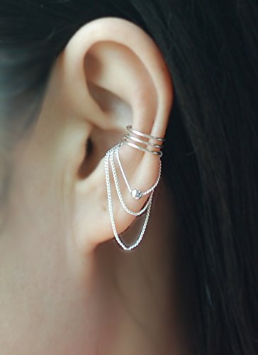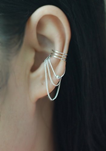 -. Title : 1 ball & 3 Chain with Sterling silver Ear cuff, Ear Jacket, Ear Wrap,No Piercing Cartilage Ear Cuff / Please select an option.