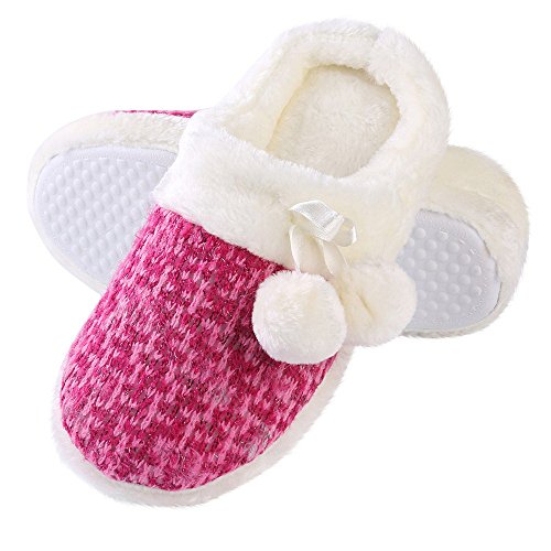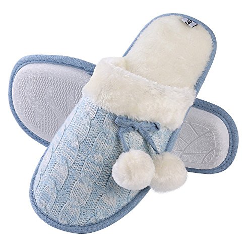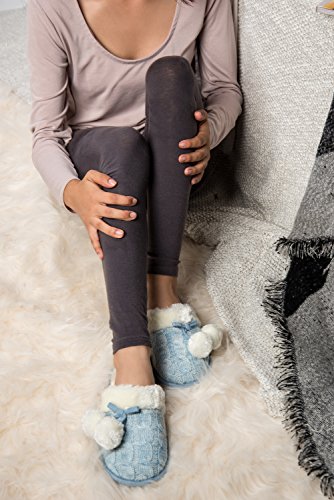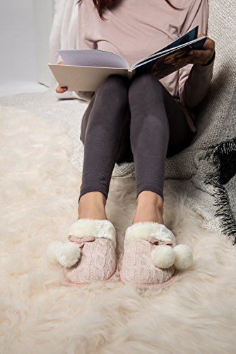 Aerusi Women Pom Pom Weave Knit Bedroom Indoor Comfortable House Home Slip On Footwear