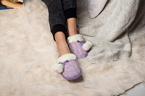 Product DescriptionA cozy cable-knit slipper with Pom Pom is trimmed and lined with genuine shearling for endless warmth in and out of the house.0